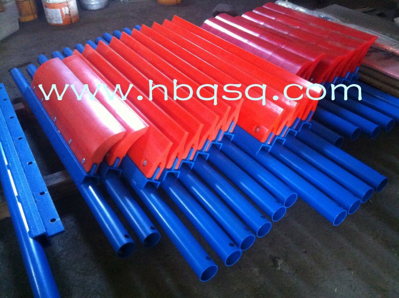 聚氨酯清掃器主要作用是清掃運輸皮帶表面的附著物,在輸送機上有著不可忽視的作用,靠皮帶傳動的生產線基本都需要靠它來對皮帶或輸送帶進行清掃。 清掃器我國的發(fā)展和起步都比較晚,被引進國內之后隨著市場和工廠設備的需求得到了相應的開發(fā),現(xiàn)隨著近幾年產業(yè)和清掃器的研發(fā)力度加大,一些企業(yè)產品的質量和技術水平已經達到或接近國際水平 。 帶式輸送機輸送物料時若輸送帶上殘留或附著物料或者其他物質如果沒有清掃器的協(xié)助這些東西就很容易的能進入到輸送機滾筒或托輥軸承座內部使軸承磨損嚴重、滾筒或托輥表面這樣會縮短皮帶的使用壽命造成皮帶表面磨損和斷裂。如果給運輸設備配上清掃裝置則能很有效的保護皮帶以及運輸設備其他的部件能提高設備的有效使用時間。所以清掃器的清掃能力對提高帶式輸送機的運行效率和使用壽命以及減少設備故障率和降低維護成本有著至關重要的作用,膠帶輸送機必備配件。